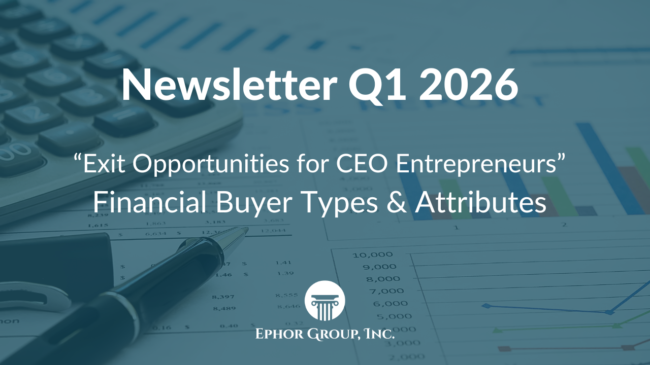 As a follow-up, in this January 2026 Monthly Edition of Ephor’s Newsletter, we provide you, the Founder & CEO Entrepreneur, a high-level educational overview on the Types of Buyers of Your Business and the Attributes of those Buyers.